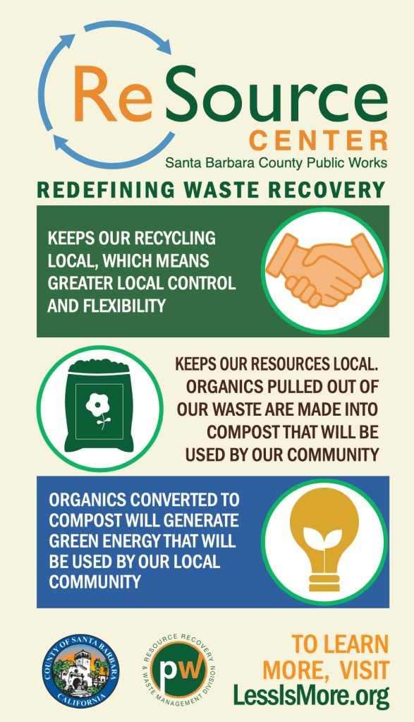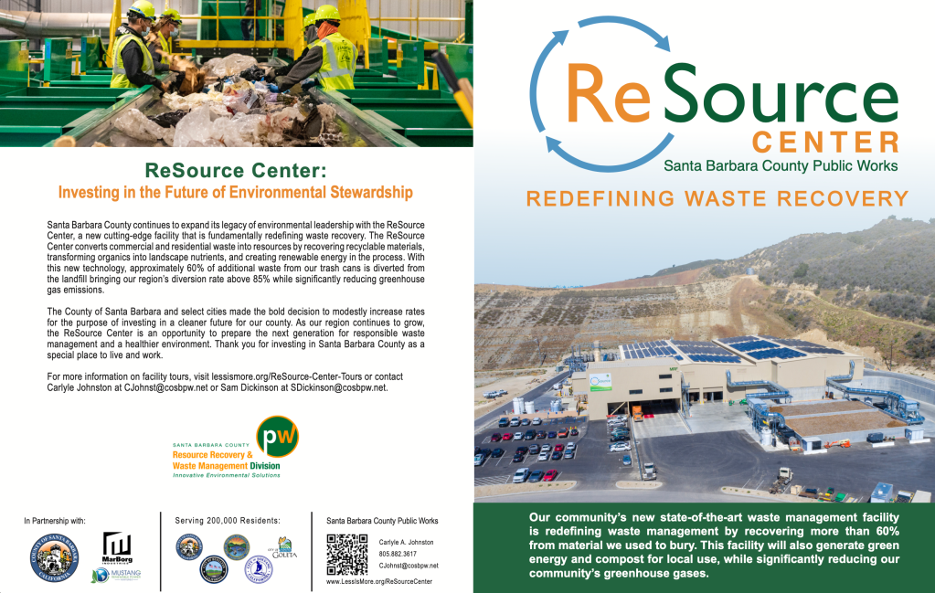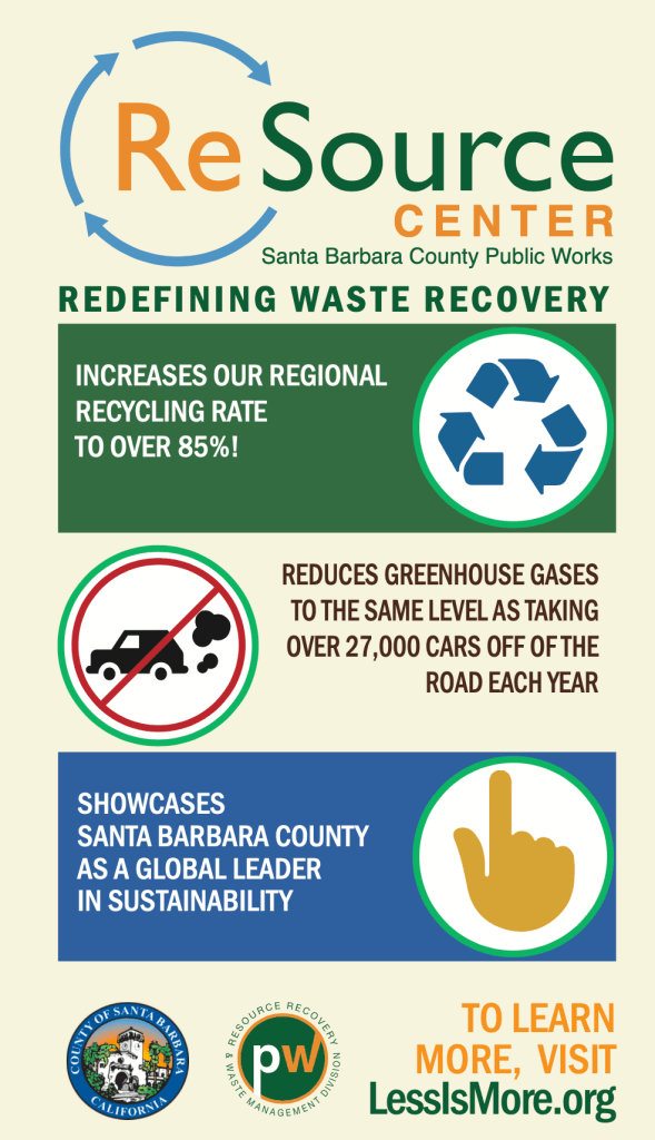 The ReSource Center is a new state-of-the-art waste management facility that will increase southern Santa Barbara County’s recycling rate to above 85%, generate resources such as green energy and compost, and dramatically lower local greenhouse gas emissions. The following is a sample of advertisements and informational content I created or help created for the project.